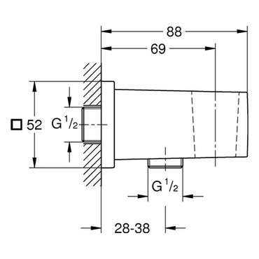 GROHE Wandanschlussbogen Euphoria Cube mit Wandbrausehalter Außengewinde eigensicher supersteel, 26370DC0