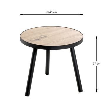 Beistelltisch schwarz-eiche aus MDF, Metall, 24466 aus Metall in schwarz lackiert, Ablage aus MDF Dekor Eiche (Bergen), Höhe:37cm, Durchmesser:40cm