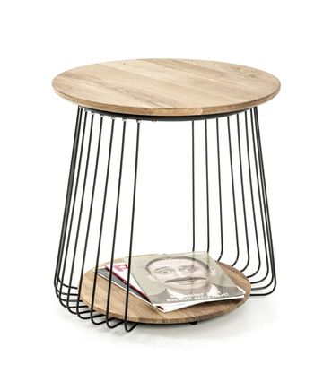 BeistelltischGestell aus Stahlrohr in schwarz lackiert Ablagen aus Massivholz Eiche, 20554